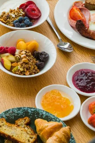 Dunmore House Hotel realmente se destaca por suas ofertas excepcionais de café da manhã, encantando os hóspedes com uma variedade de pratos deliciosos e lindamente apresentados. Os hóspedes elogiam consistentemente o hotel por oferecer uma ampla seleção de opções de café da manhã que atendem a diversos gostos, desde o tradicional café da manhã irlandês completo até omeletes, panquecas e peixes. O uso de ingredientes de origem local e itens caseiros adiciona um toque delicioso à experiência gastronômica, recebendo muitos elogios por sua frescura e qualidade. Muitos visitantes notaram os croissants deliciosos e torradas de sourdough, enquanto a inclusão de saladas de frutas vibrantes, iogurte fresco e uma variedade de opções de café da manhã garante um início de dia satisfatório.