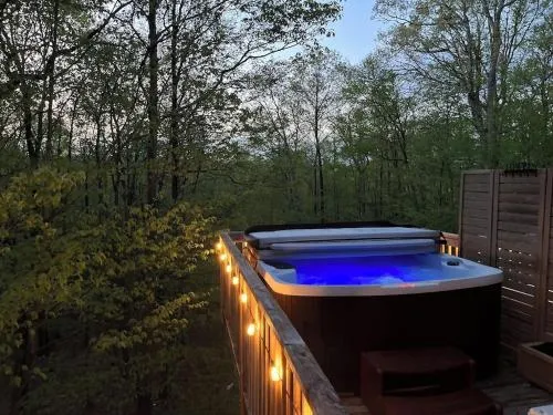 Existe um spa disponível em Poconos A-Frame seclude cabin,hot-tub,sauna,firepit,deck?
