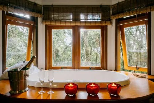 Nomeado após o cogumelo Amanita, o nome desta pousada faz referência a fungos locais e ao ecossistema florestal, sugerindo um ambiente integrado com a floresta natural.