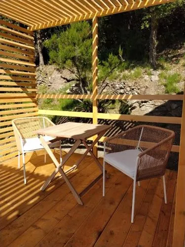 Estas charmosas cabanas são construídas com madeira natural e materiais ecologicamente corretos. Cada cabana é energeticamente autônoma devido à energia solar e usa água de uma fonte gerida localmente. O estabelecimento apoia a economia local, evita produtos de uso único, usa produtos de limpeza ecológicos e implementa a triagem seletiva de resíduos.
